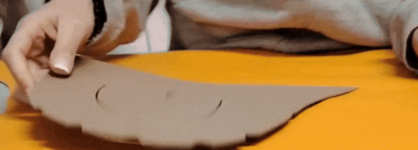 Si tagliano i materiali seguendo il modello, prestando attenzione a mantenere precisione nelle misure e nei bordi.